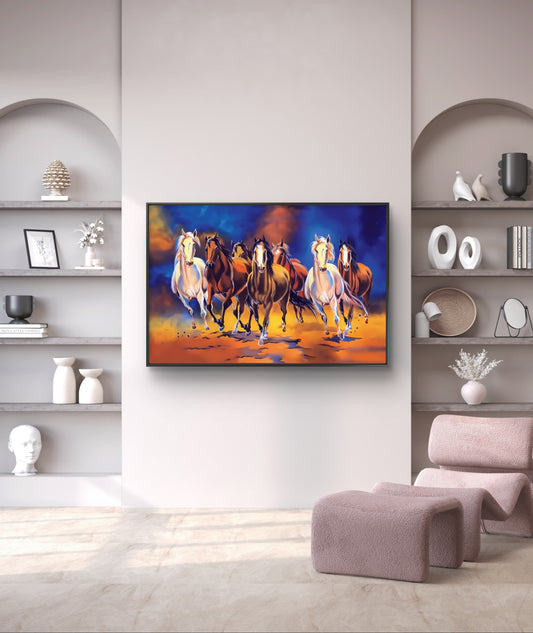 STRENGTH OF THE SEVEN HORSES CANVAS PAINTING ( 24X36 INCH )