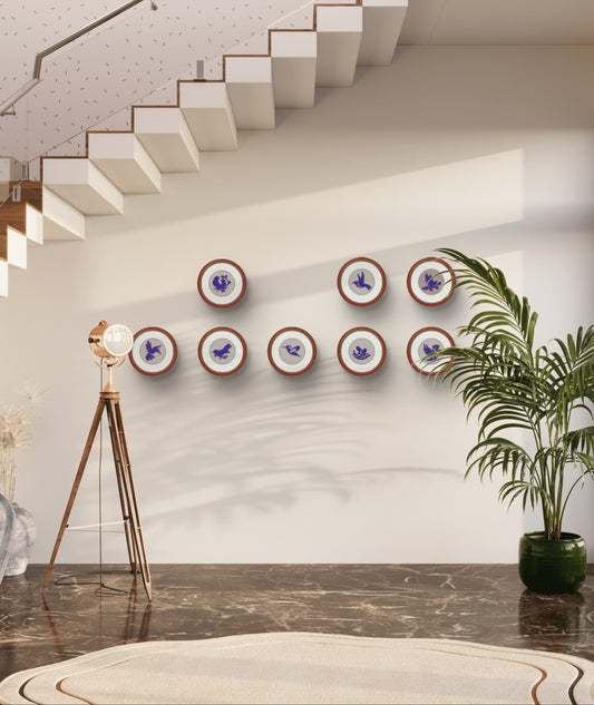 SPARROW SCULPTURE WALL DECOR WOODEN RING WALL ART SET OF 8 PCS