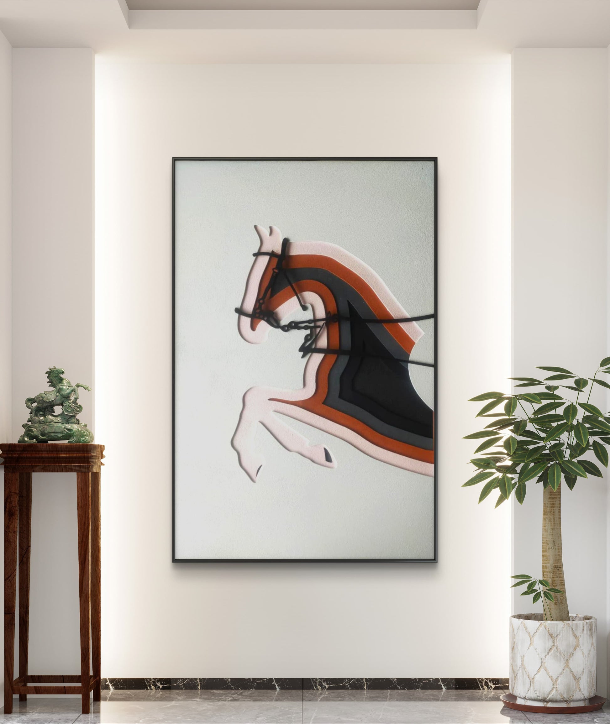 Texture Layers art, 3D wall sculpture Climb horse with mdf layers, Reclaimed sand art, Minimal painting, Minimalistic wall art, rustic wood wall art 50mm framed with Glass.